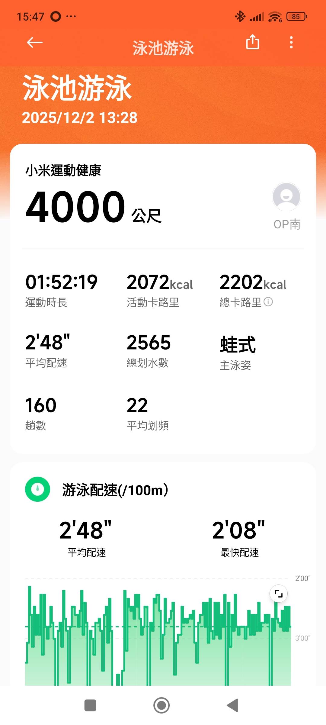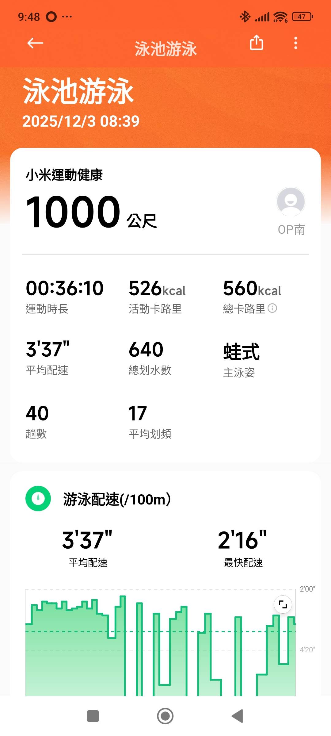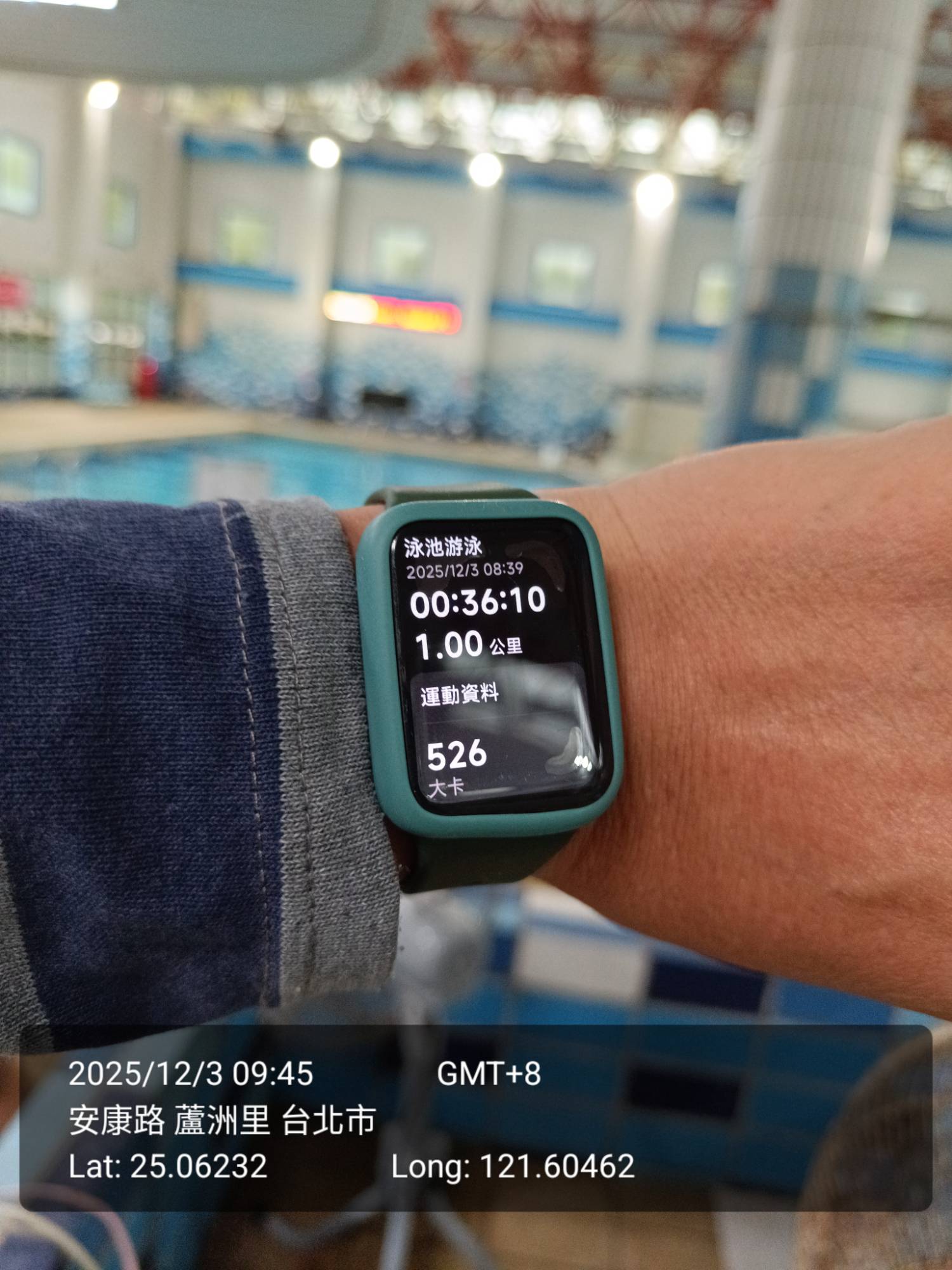 1000踢水。前面一個禮拜去台北高雄,又颱風沒有游 |